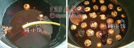 4、敲破壳的鹌鹑蛋加所有香料和调味料,再加水至没过蛋2cm左右。