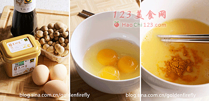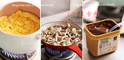 7、将蟹味菇入锅中,拌煮约1分钟,后加入鸡蛋和清水,中小火炖煮至滚起,滚起后再等待约2分钟(边煮需要边稍作搅拌)后取出。