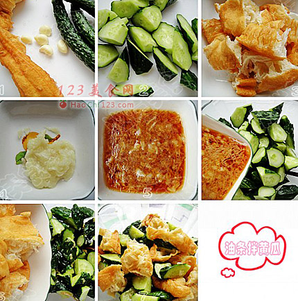6、将蒜泥汁倒入黄瓜中先拌匀。
