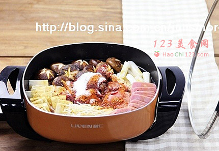 1、食谱里用的电火锅型号是利仁DHG-40FK,这款电火锅有火力精准,真正可调温功能,很适合这个食谱的使用,而且容积很大,有5.5L,按照食谱制作的一整锅部队火锅足够一家人大快朵颐了。要是你只有一人或两人食用,也可以选择利仁其他小容积的电火锅,并按比例减少食谱中的食材用量。