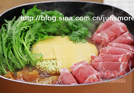 4、这道火锅中,有荤有素,也有拉面、年糕等主食,一锅下来不仅美味也足够填饱肚子。当然你喜欢的话还可以配上一碗白米饭,浓郁的汤汁搭配米饭也是非常美味的哦![LaoYanHuo.com]