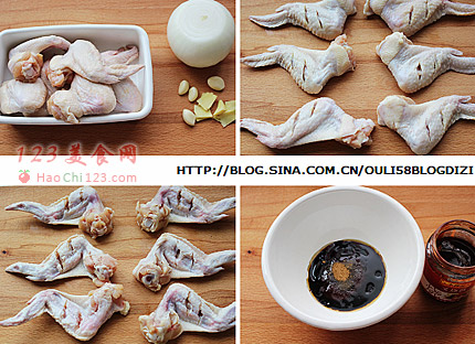 3、将鸡翅和料汁拌匀后,腌制半天以上,洋葱去皮切丝,姜洗净切丝,蒜去皮切片。