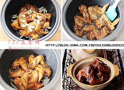 4、洋葱垫底一来可以使鸡翅更美味,二来绝不会糊锅底,一滴水不放,但洋葱加热后,汤汁被鸡翅吸收,更美味。[LaoYanHuo.com]