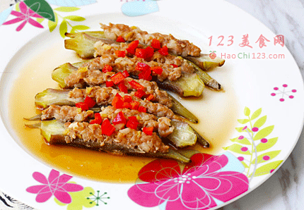 2、酿入秋葵的肉馅不需要太多,保持纤细的外形。[LaoYanHuo.com]
