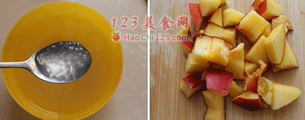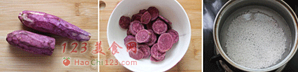 7、把搅拌好的紫薯汁倒入杯子里,加入西米露,在放上油桃就可以啦![LaoYanHuo.com]