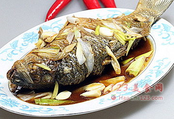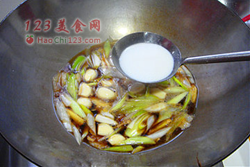 4、另起锅,爆香葱姜蒜,调入大糖、大醋、酱油、盐、料酒、清水,烧开后勾芡浇在鱼身即可。