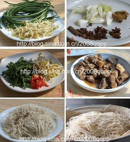 5、细的鲜面条一斤备用,也可用圆、扁、挂面、烩面等。