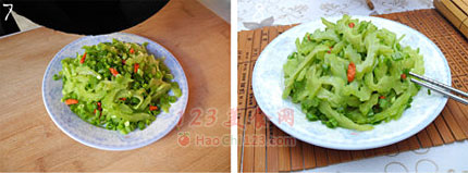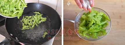 4、因苦瓜含有苦瓜素,味道很苦,凉拌时用水焯下会去除一部分苦味。