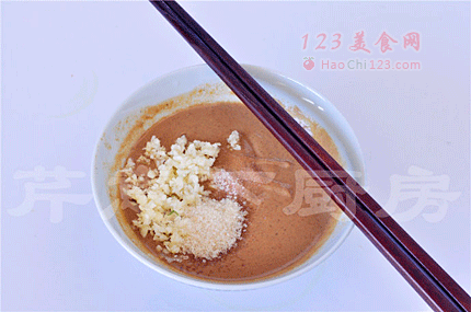 4、加入糖、盐、蒜末和姜末,拌匀即成芝麻酱拌面酱。