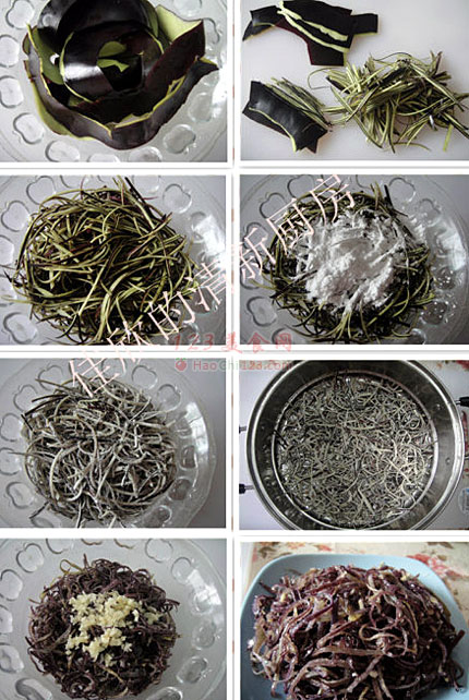 1、按照此方法还可以做蒸土豆丝、红萝卜丝,把茄子皮换成土豆或红萝卜即可。