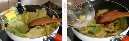 12、倒入适量白水,不要没过圆白菜,大火煮。