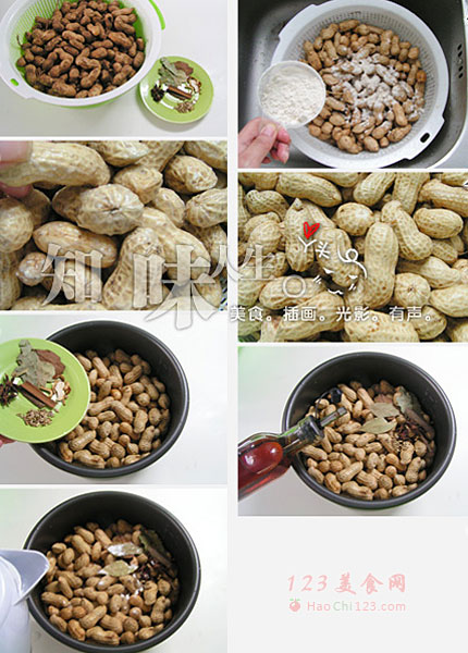 2、花生表面的泥怎么才能彻底洗干净呢?先把花生过几遍水,洗掉大部分泥,沥干水之后倒一些面粉在花生上。
